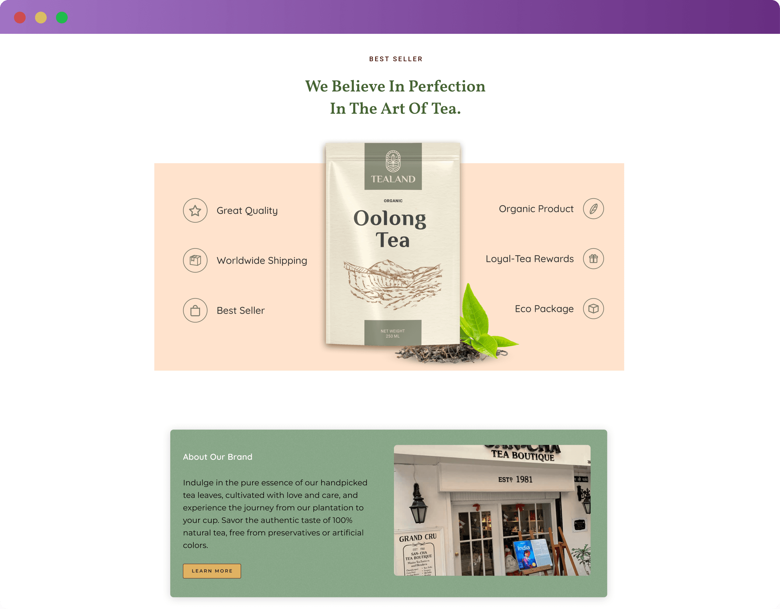 This section provides a view on the features of our premium tea. And as i said TeaLand was almost 45 years older than why don't i add a section to specify our far away milestones