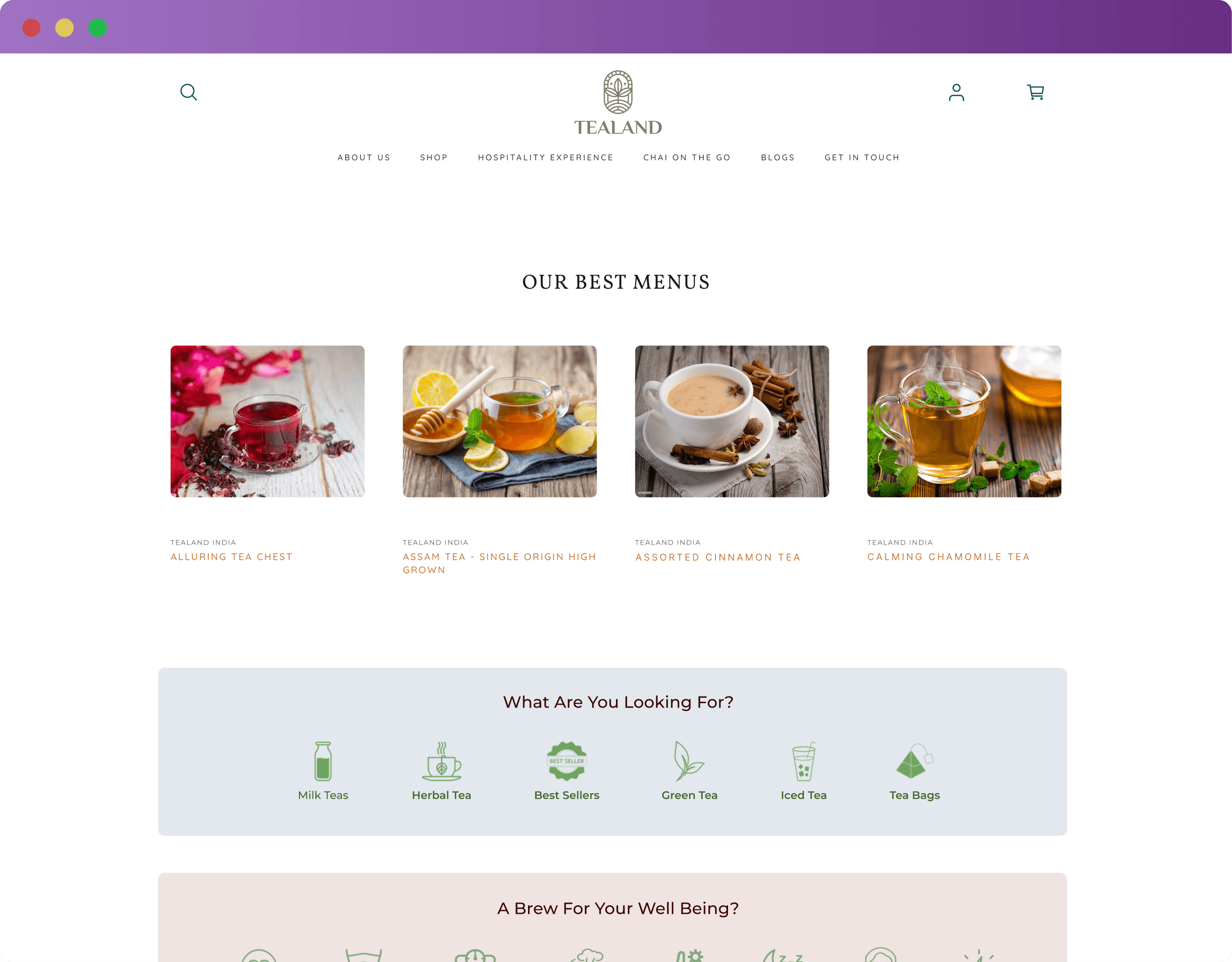 Along with that i designed a section reflecting TeaLand's quality and services.